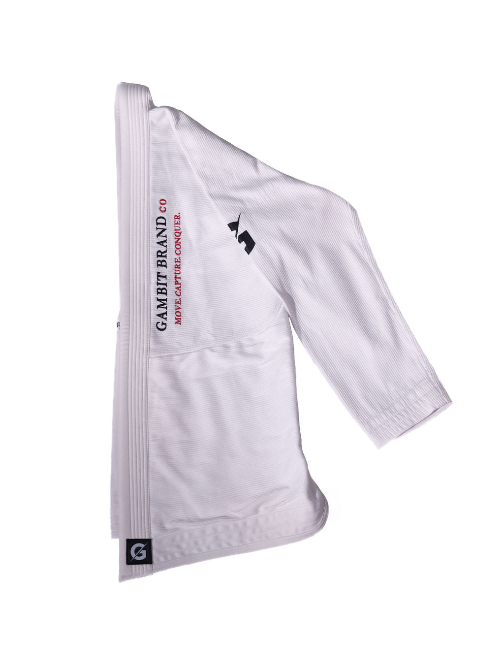The Gambit Brand White Pearl Weave BJJ Gi is more than just a piece of clothing; it's a reliable partner in your BJJ journey. Engineered for durability to withstand the toughest training sessions, it ensures you can focus on perfecting your techniques without worrying about your gear. The lightweight design and strategic ventilation keep you comfortable, promoting peak performance during every roll.
